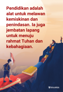 Pendidikan adalah alat untuk melawan kemiskinan dan penindasan. Ia juga jembatan lapang untuk menuju rahmat Tuhan dan kebahagiaan.